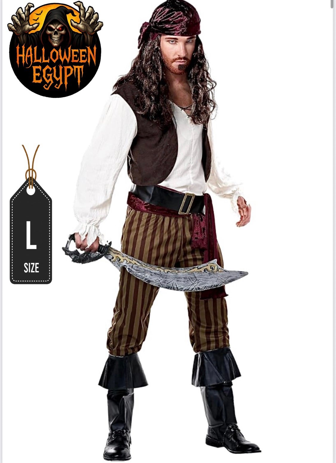 Male Pirate Costume (Brown-Striped)