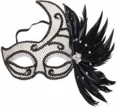 Feather Lace Masquerade Mask (Black)