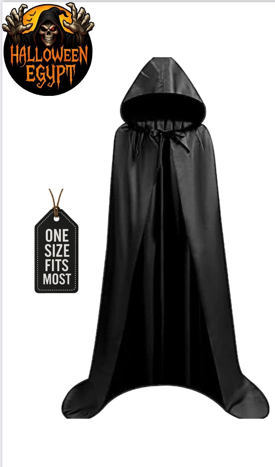 A must-have cloak for vampires, reapers, or magicians — versatile and timeless. عباءة سوداء أنيقة تناسب مختلف الإطلالات التنكرية.